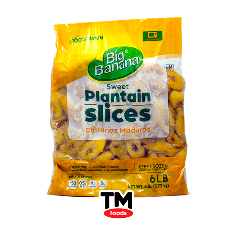Las Tajadas de Plátano Maduro Precocidas de Big Banana son rebanadas listas para calentar y servir. Su dulzura natural y suavidad las hacen el acompañante perfecto para cualquier comida.