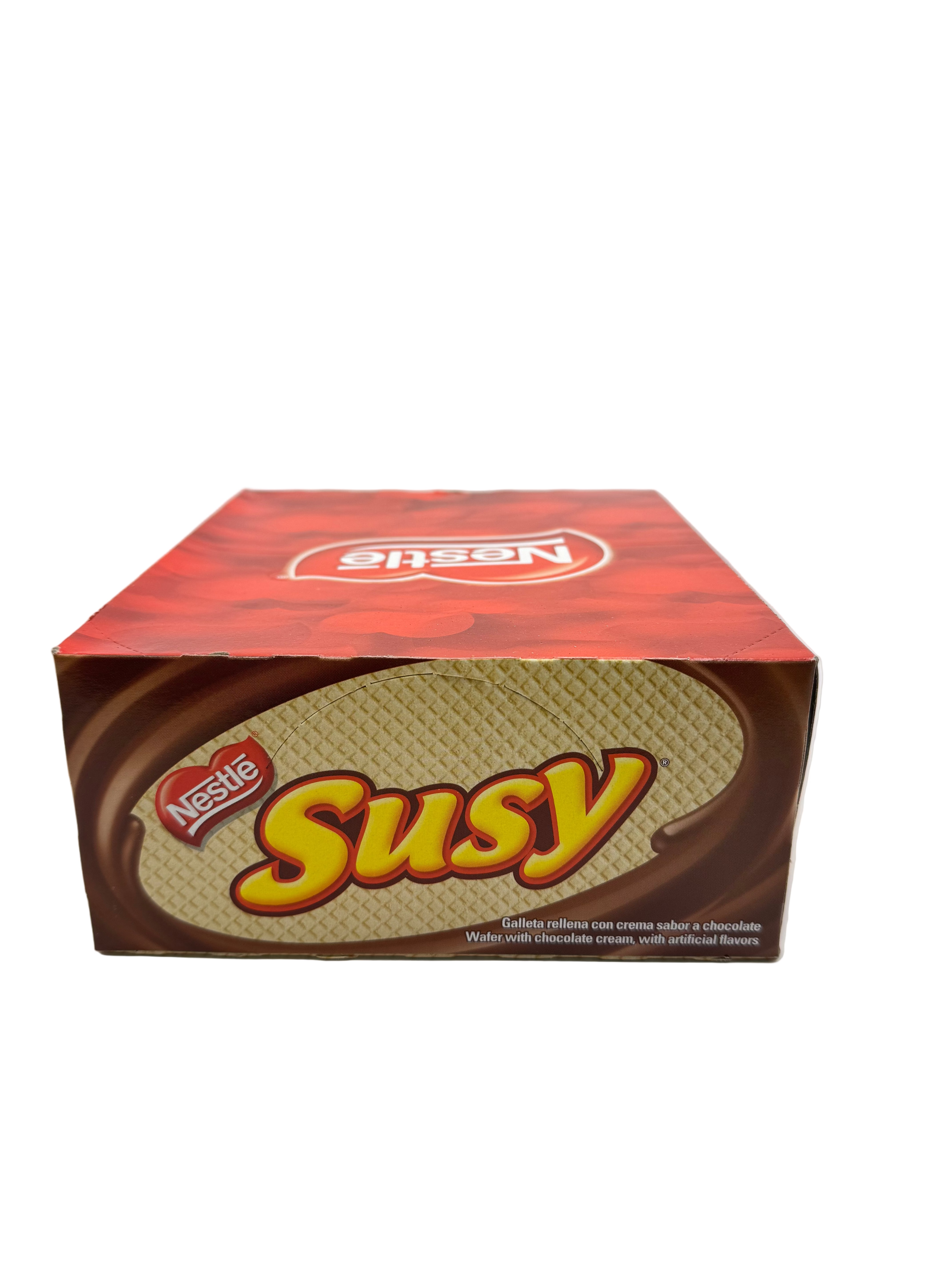 Las Galletas Wafer Susy de Chocolate son crujientes y con un relleno suave de chocolate. Un bocado nostálgico que conquista con su combinación perfecta. Ideales para exhibición en puntos de venta.