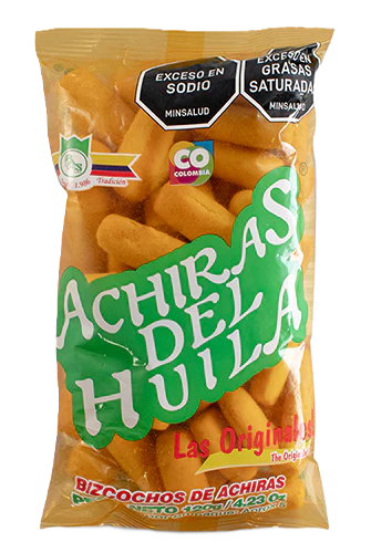 Las achiras del Huila son una galleta tradicional colombiana elaborada con harina de achira y queso. Su textura crujiente por fuera y suave por dentro, con un sabor salado y ligeramente lácteo, las convierte en un snack auténtico e irresistible.